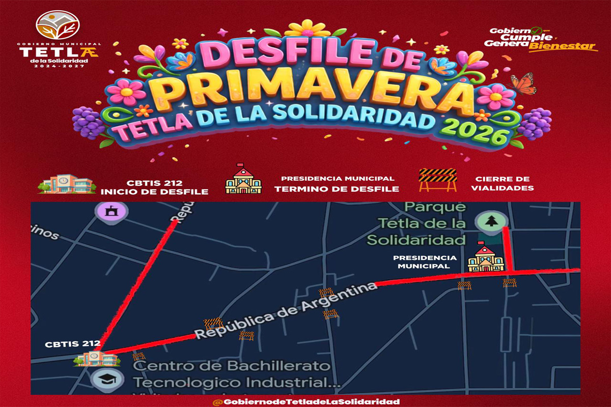El Gobierno Municipal de Tetla de la Solidaridad te invita a disfrutar de un evento lleno de color, alegría y tradición. 🎉🌼 📅 Fecha: Viernes 20 de marzo 9:00 A.M...