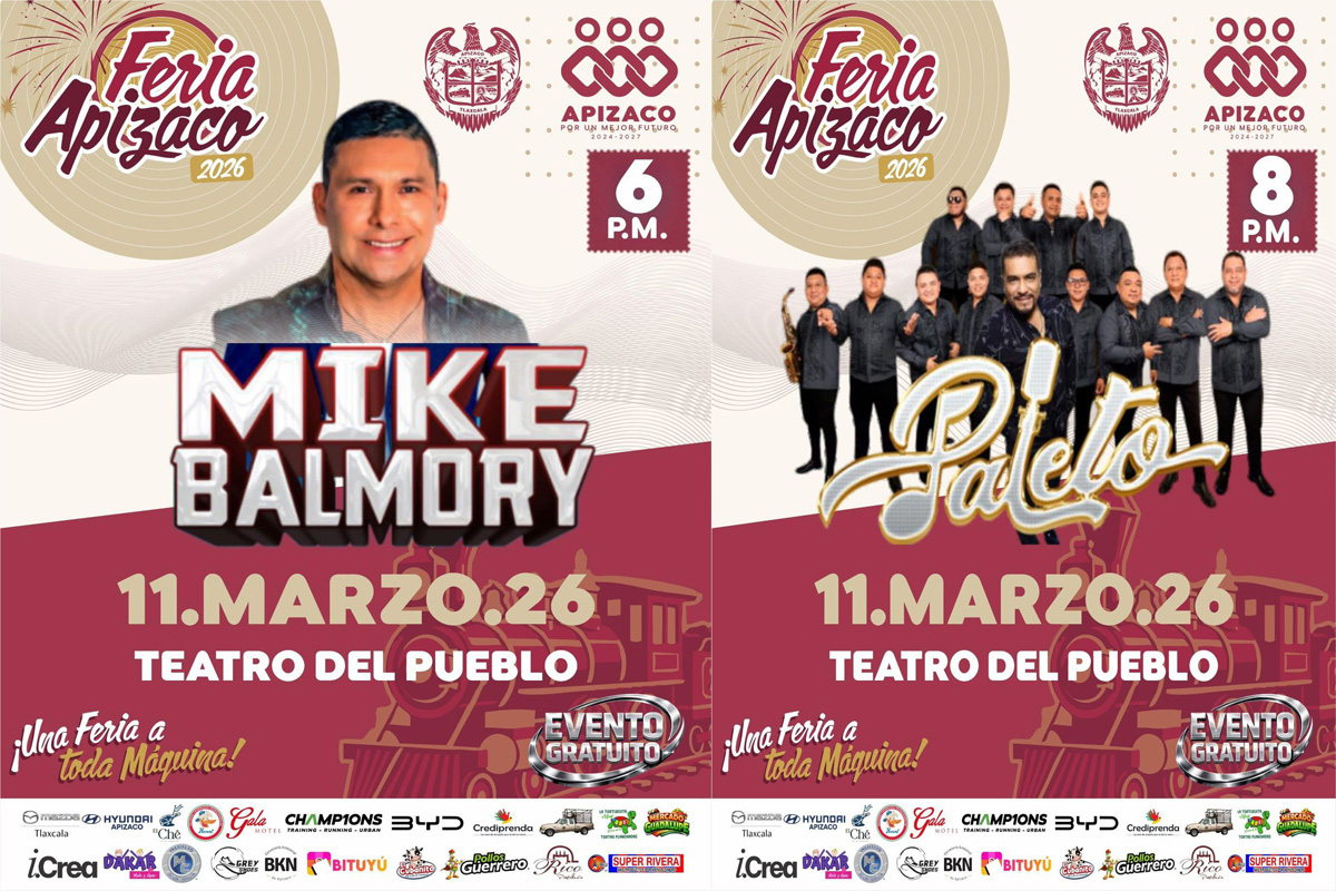 Hoy en la Feria de Apizaco 2026 estarán Mike Balmory, ex integrante de Súper Lamas, y Paleto, ex integrante de Junior Klan, completamente gratis en el Teatro del Pueblo. Prepárate...