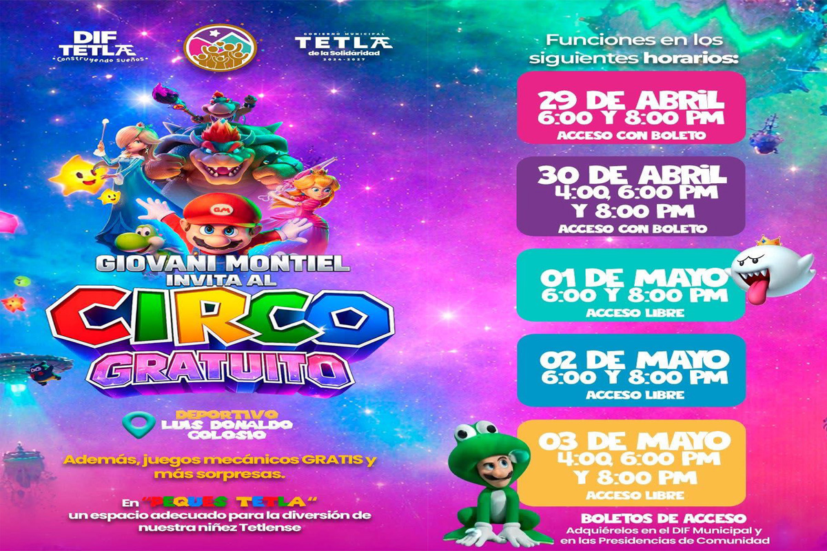 La diversión llega para ustedes con el Circo GRATUITO de Marios Bros. 🎪🍄 Vengan a disfrutar de juegos mecánicos GRATIS 🎡, regalos 🎁 y muchas sorpresas más. ⚠️ Información importante:...