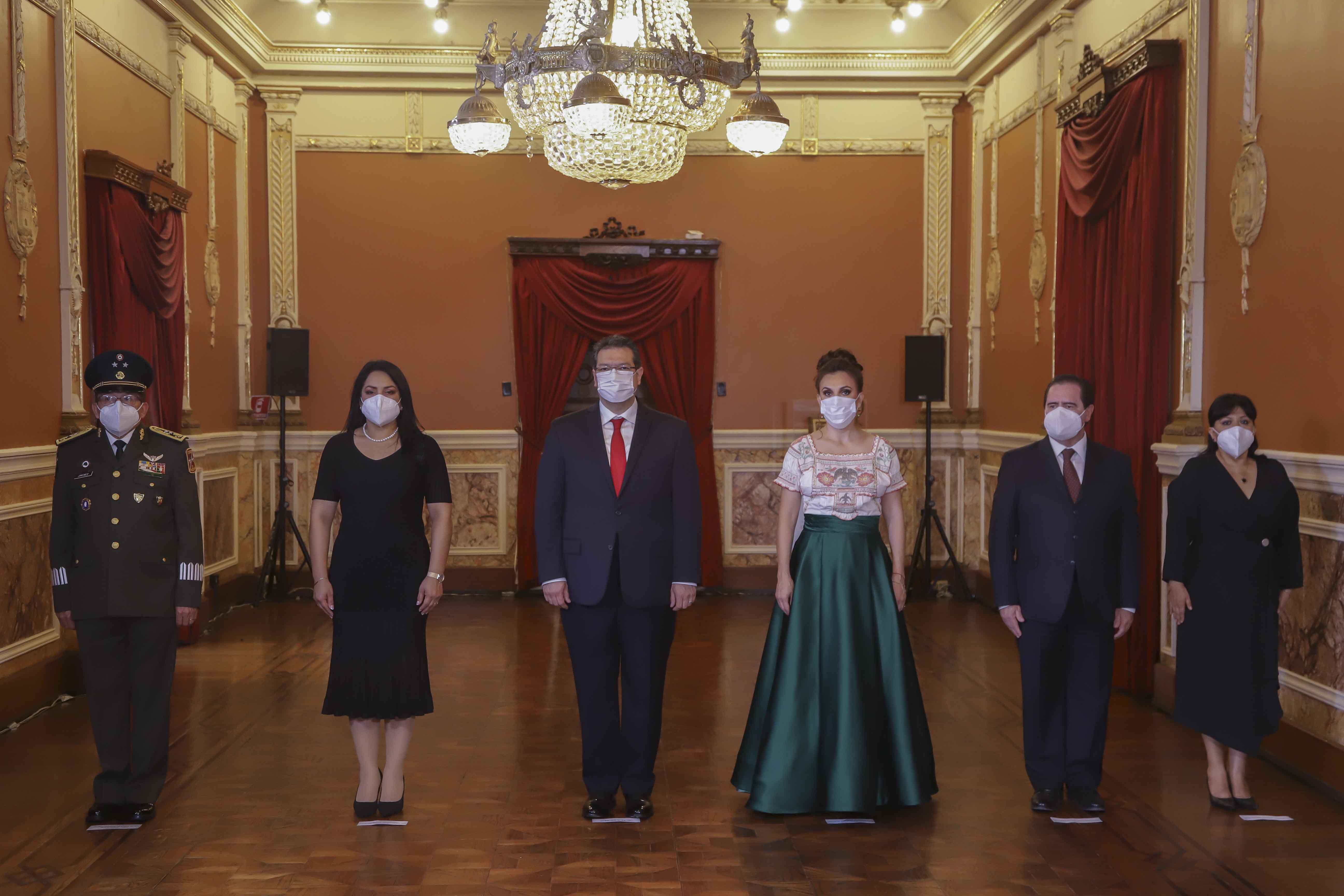 En la ceremonia conmemorativa por el 210 Aniversario del Inicio de la Independencia de México estuvieron Sandra Chávez Ruelas, Presidenta del DIF Estatal; la Diputada María Isabel Casas Meneses, Presidenta de la Mesa Directiva del Congreso del Estado; Fernando Bernal Salazar, Magistrado Presidente del Tribunal Superior de Justicia del Estado y del Consejo de la Judicatura; el General de Brigada Diplomado de Estado Mayor, José Joaquín Jiménez Cueto, Comandante de la 23 Zona Militar y Anabel Ávalos Zempoalteca, Presidenta Municipal de Tlaxcala.