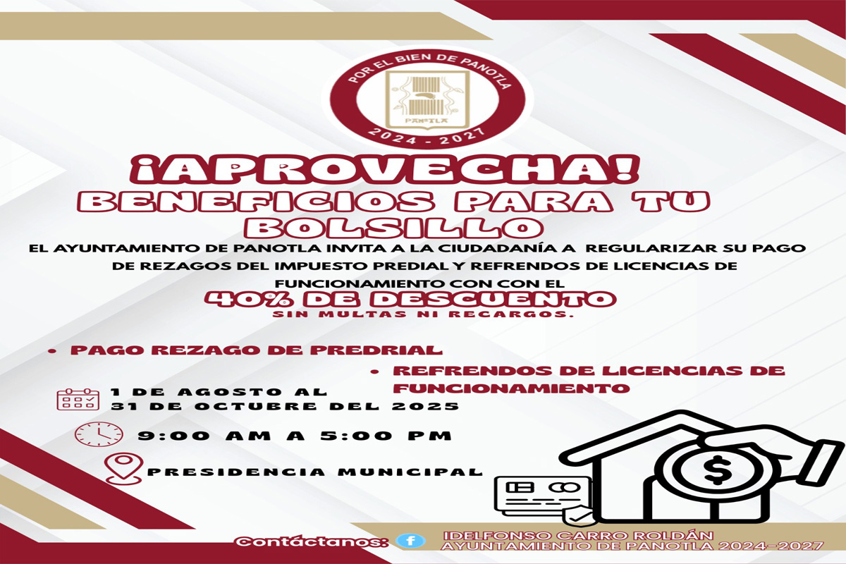 Con el objetivo de apoyar la economía familiar y fomentar la regularización de contribuyentes, el H. Ayuntamiento de Panotla, a través de la Dirección de Ingresos, anuncia la puesta en...