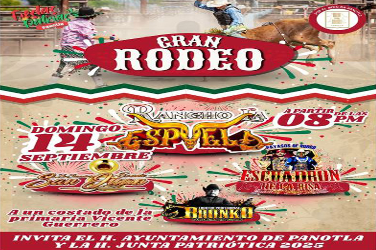El H. Ayuntamiento de Panotla, en coordinación con la H. Junta Patriótica 2025, invita a toda la ciudadanía a disfrutar del Gran Rodeo que se llevará a cabo este domingo...