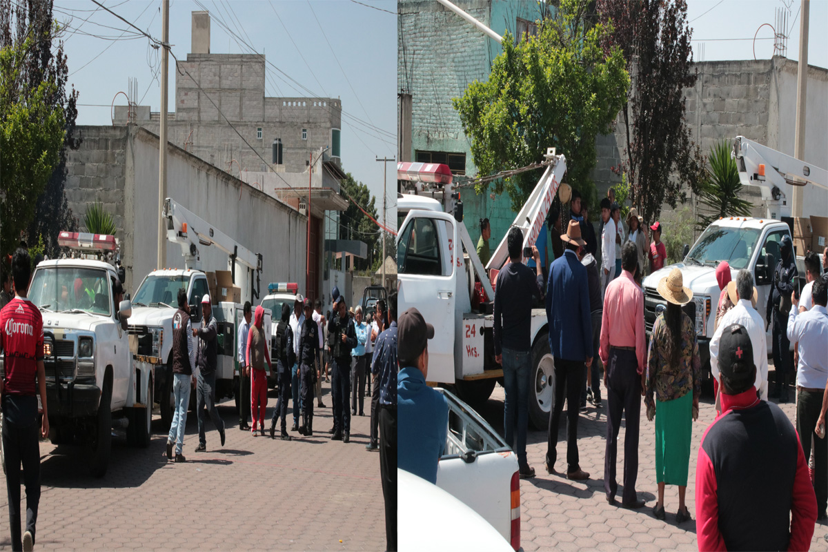 Con uso de violencia se agredió al personal mientras colocaban Alumbrado Público. Pobladores de Tlaltelulco motivados por su Presidente Municipal, robaron dos vehículos tipo plumas y 40 lamparas led, con...