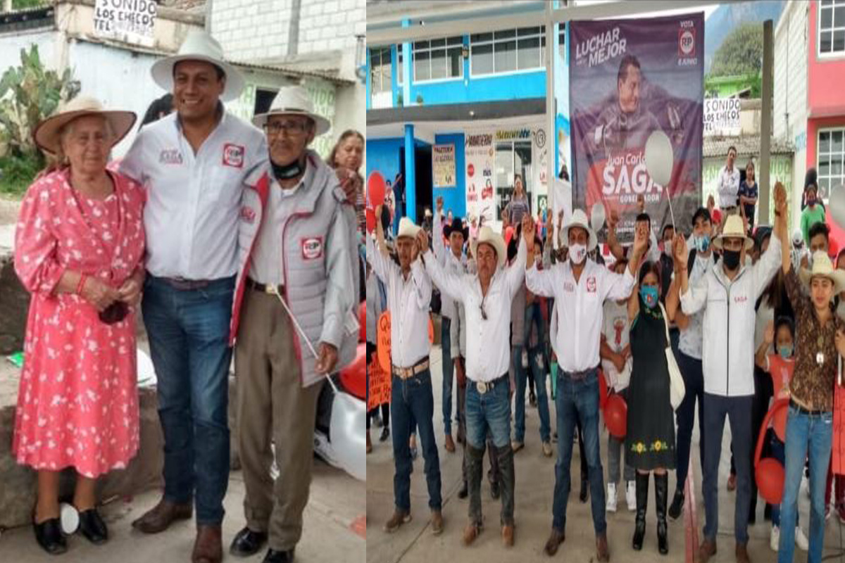 July M. Zamora El candidato de Redes Sociales Progresistas (RSP), Juan Carlos Sánchez García, SAGA, recorrió las calles de El Rosario, Tlaxco, donde en el toque de puertas visitó a...