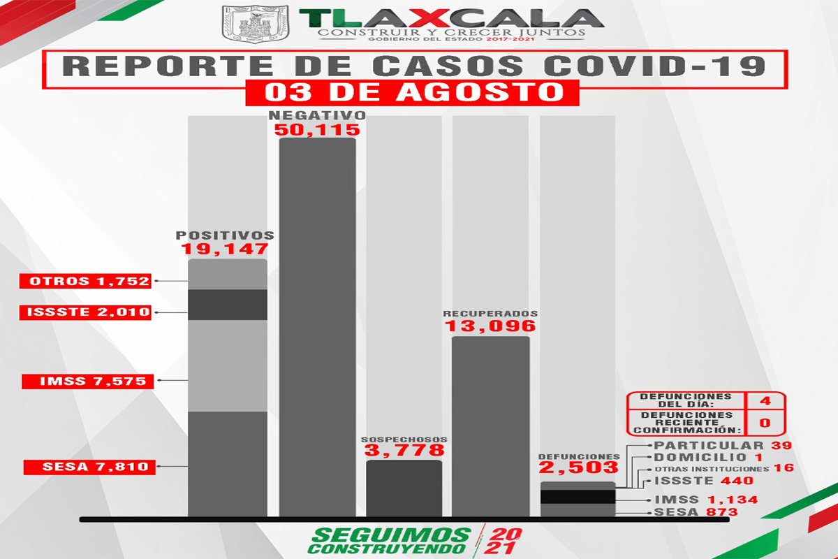 En otra entidad se confirmó un tlaxcalteca más que resultó positivo al virus. De acuerdo con el reporte del 03 de agosto, la Secretaría de Salud del Estado (SESA) confirmó...