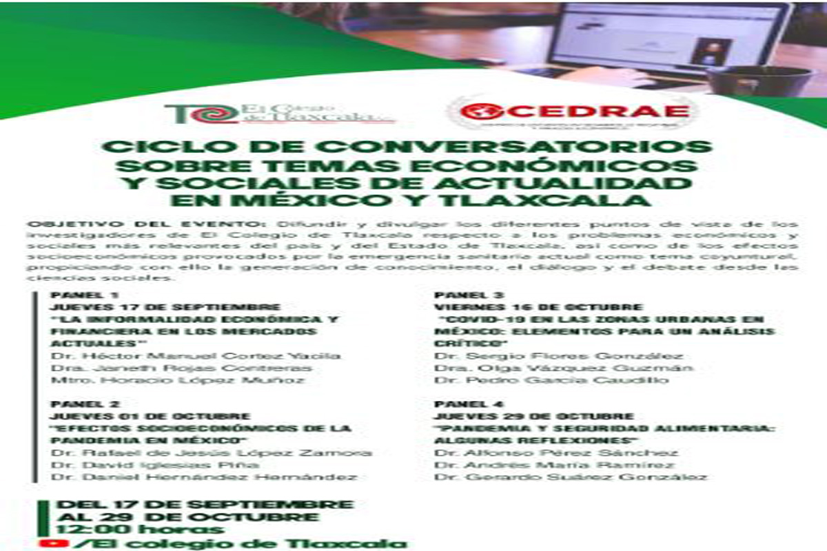 - Tags: “Ciclo de Conversatorios Virtuales sobre Temas EconómicosA.C. (Coltlax)Ana MontielCentro de Estudios en Desarrollo Regional y Análisis Económico (Cedrae)Colegio de Tlaxcalaemergencia sanitaria por la Covid-19Héctor Manuel Cortéz YacilaProfesor-Investigador del Coltlax y Director del CedraeRafael de Jesús López ZamoraSociales de Actualidad en México y Tlaxcala”Tlaxcala Digitalwww.tlaxcaladigital.com