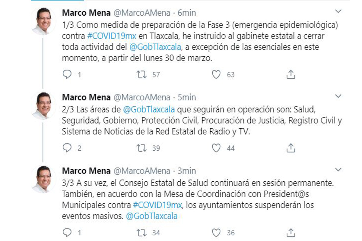 - Tags: #TlaxcalaAna MontielApizacoChiautempanCoordinación Estatal de Protección CivilCoordinación Estatal de Protección Civil (CEPC)COVID-19El Carmen TequexquitlaGobernador Marco MenaGobierno del EstadoIxtacuixtlaJosé Antonio Ramírez HernándezSan Pablo del MonteTetla de la solidaridadtianguis de Apizacotitular de la CEPCTlaxcala Digitalwww.tlaxcaladigital.comZacatelco