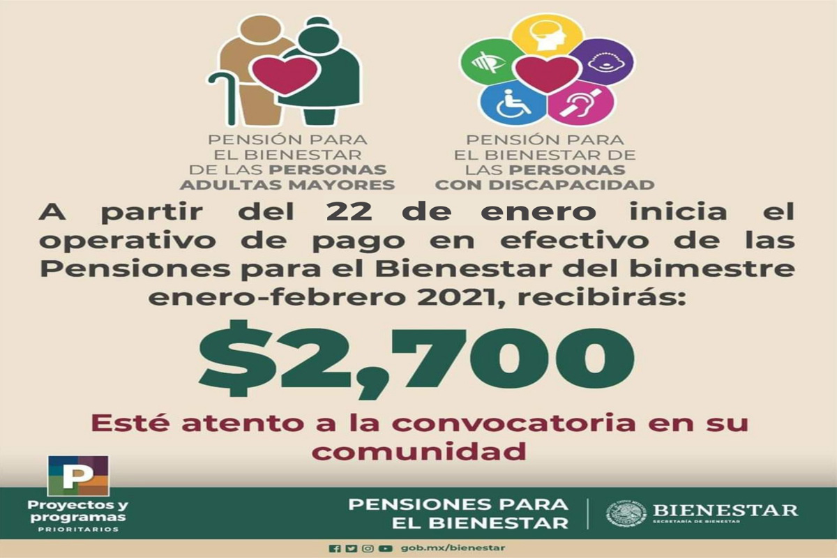 Se entregarán a 83 mil beneficiarios recursos correspondientes al primer bimestre de este año, enero-febrero del 2021. Es este operativo NO se prevé la aplicación de la vacuna contra el virus...