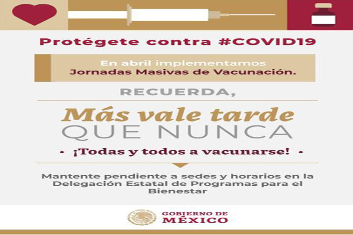 Al culminar abril la vacunación quedará en manos de las instituciones de salud del estado. La delegación en Tlaxcala de la Secretaría de Bienestar informa que del 18 al 22...