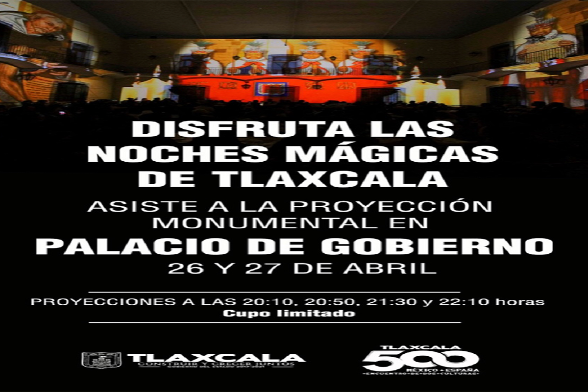 - Tags: “Conmemoración de los 500 años del Encuentro de Dos culturas”“Disfruta las Noches Mágicas de Tlaxcala”“Las Noches Mágicas de Tlaxcala”Ana MontielAnabel Alvarado VarelaEl Gobierno del EstadoHernán Cortéslas familias tlaxcaltecasPalacio de Gobiernotitular de la Comisión Organizadora de los 500 AñosTlaxcala Digitalvideo mappingwww.tlaxcaladigital.com
