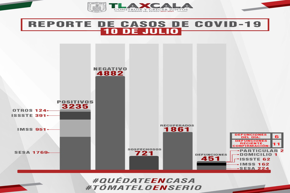 Confirma @SesaTlax 67 personas recuperadas, 86 casos positivos y 6 fallecimientos de COVID-19 en #Tlaxcala