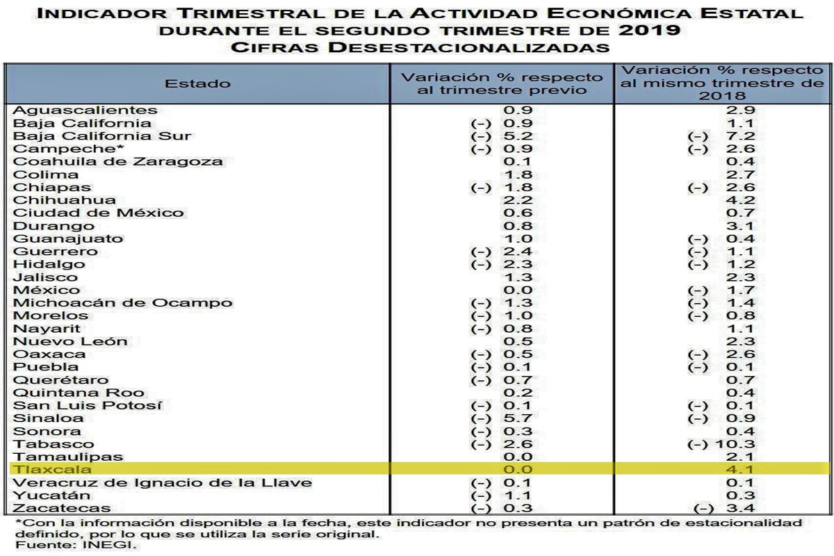 #Tlaxcala registra 4.1 puntos porcentuales de crecimiento económico en el 2do. trimestre del 2019