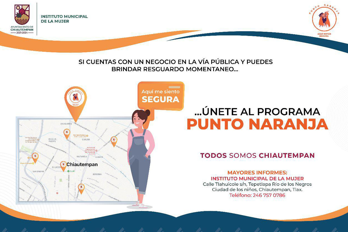 El Ayuntamiento de Chiautempan a través del Instituto Municipal de la Mujer (IMM) invita a comercios de las diferentes comunidades del municipio a sumarse a la estrategia de "Puntos Naranjas"....