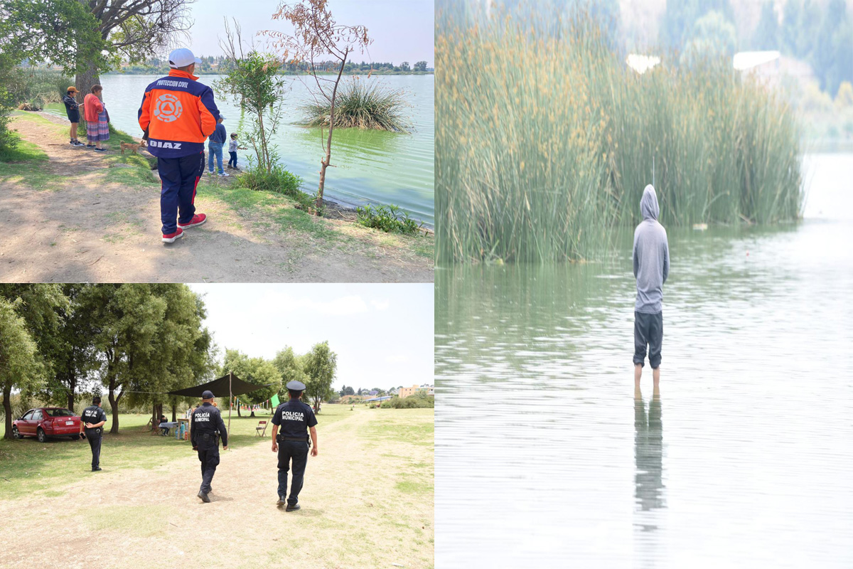 Elementos de la Dirección de Seguridad Ciudadana y Movilidad del Ayuntamiento de Tlaxcala hacen recorridos de vigilancia en la Laguna de Acuitlapilco. Junto con personal de Protección Civil Municipal realizan...