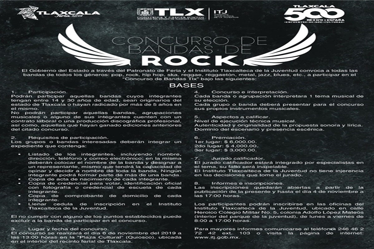 - Tags: “Concurso de Bandas TLX”Ana MontielInstituto Tlaxcalteca de la Juventud (ITJ)marco de “Tlaxcala Feria 2019”Tlaxcala Digitalwww.tlaxcaladigital.com