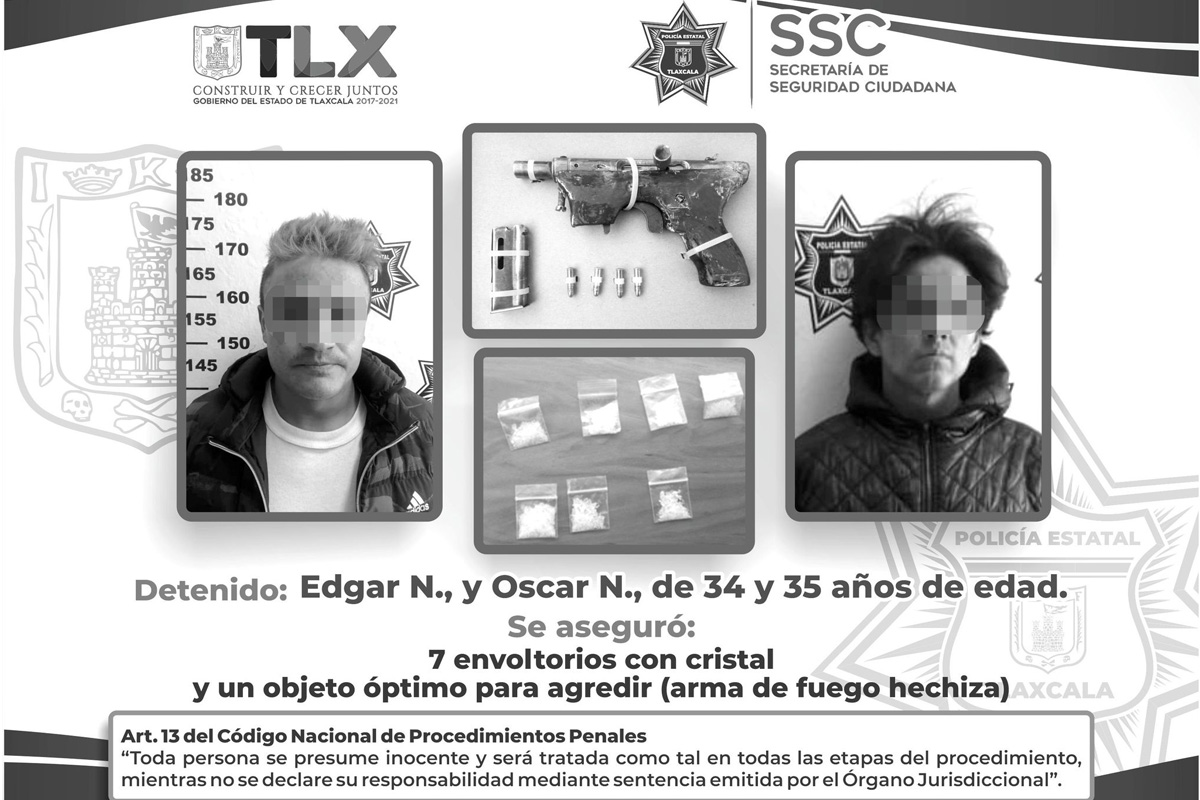 Las personas detenidas en Apizaco portaban siete bolsas con la droga denominada “cristal”, así como un arma de fuego hechiza. La Secretaría de Seguridad Ciudadana (SSC) detuvo a través de...