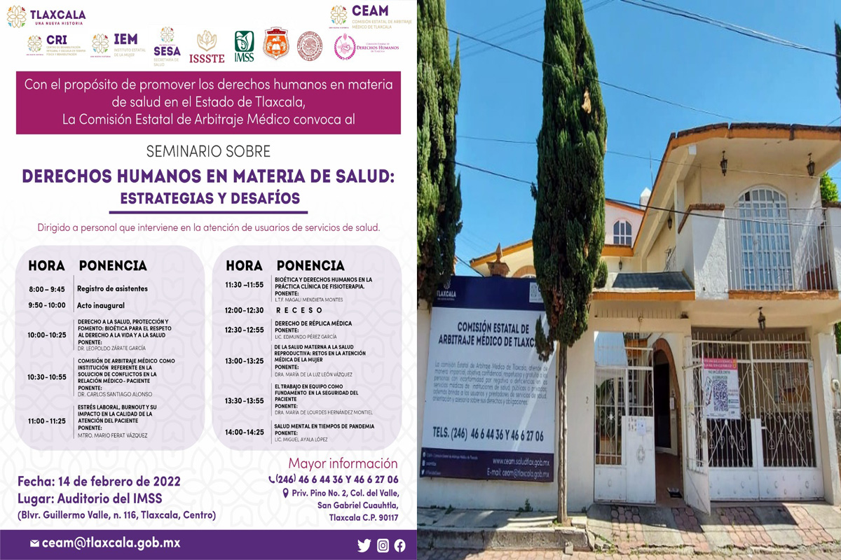 El objetivo es mejorar los servicios de salud en el estado La Comisión Estatal de Arbitraje Médico (CEAM) de Tlaxcala programó el seminario “Derechos humanos en materia de salud: estrategias...