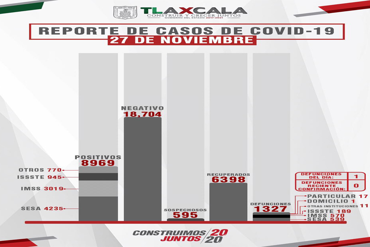 En otra entidad se confirmó un tlaxcalteca más que resultó positivo al virus. De acuerdo con el reporte del 27 de noviembre, la Secretaría de Salud del Estado (SESA) confirmó 44...