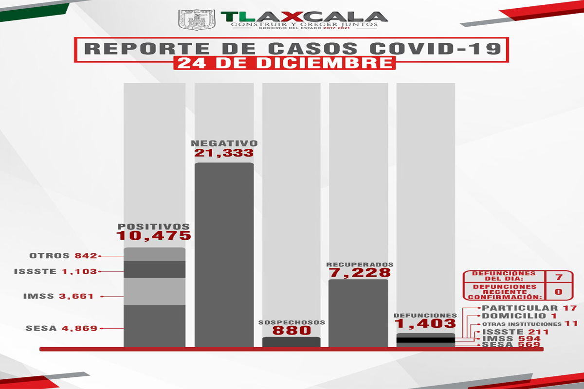 En otra entidad se confirmó un tlaxcalteca más que resultó positivo al virus. De acuerdo con el reporte del 24 de diciembre, la Secretaría de Salud del Estado (SESA) confirmó...