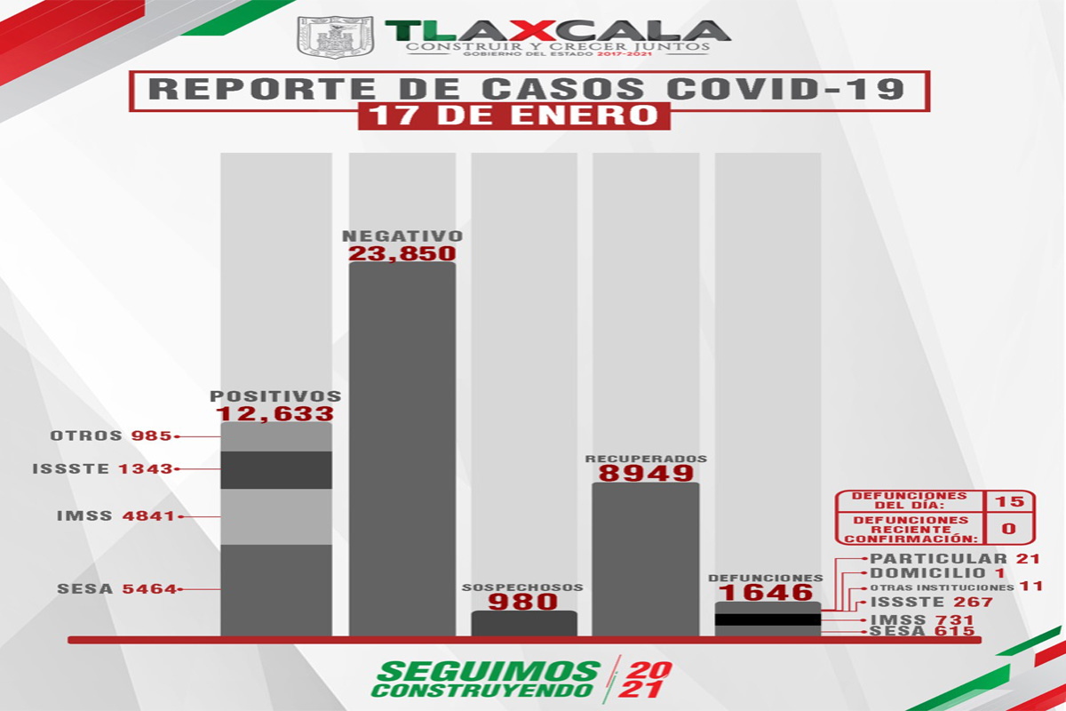 En otras entidades se confirmaron tres tlaxcaltecas más que resultaron positivo al virus. De acuerdo con el reporte del 16 de enero, la Secretaría de Salud del Estado (SESA) confirmó...