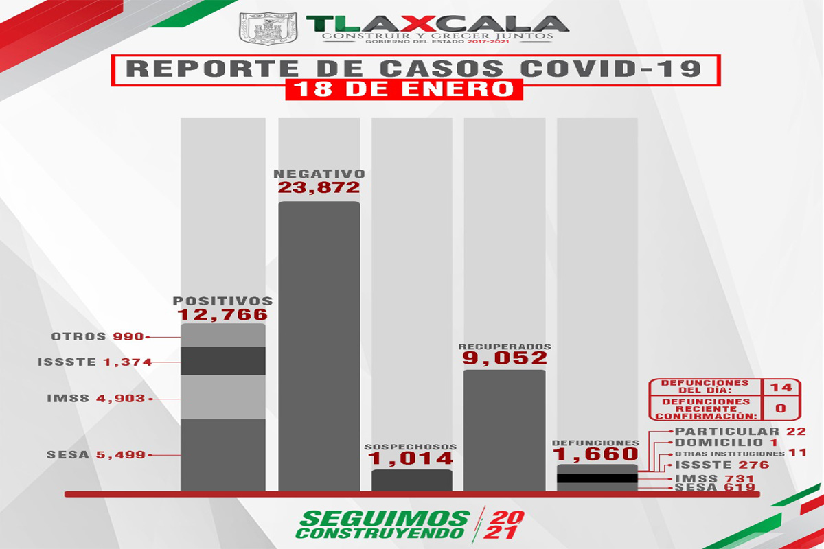 En otras entidades se confirmaron 9 tlaxcaltecas más que resultaron positivo al virus. De acuerdo con el reporte del 18 de enero, la Secretaría de Salud del Estado (SESA) confirmó...