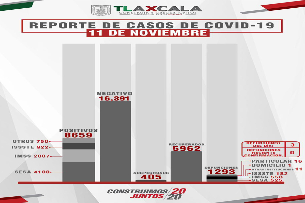 En otras entidades se confirmaron tres tlaxcaltecas más que resultaron positivos al virus. De acuerdo con el reporte del 11 de noviembre, la Secretaría de Salud del Estado (SESA) confirmó...