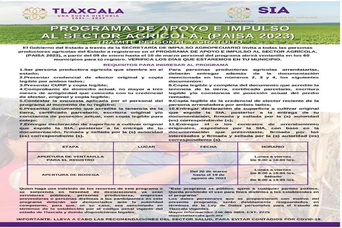 - Tags: Dirección de Bienestar Humano del Municipio de TlaxcalaSecretaría de Impulso Agropecuario (SIA)