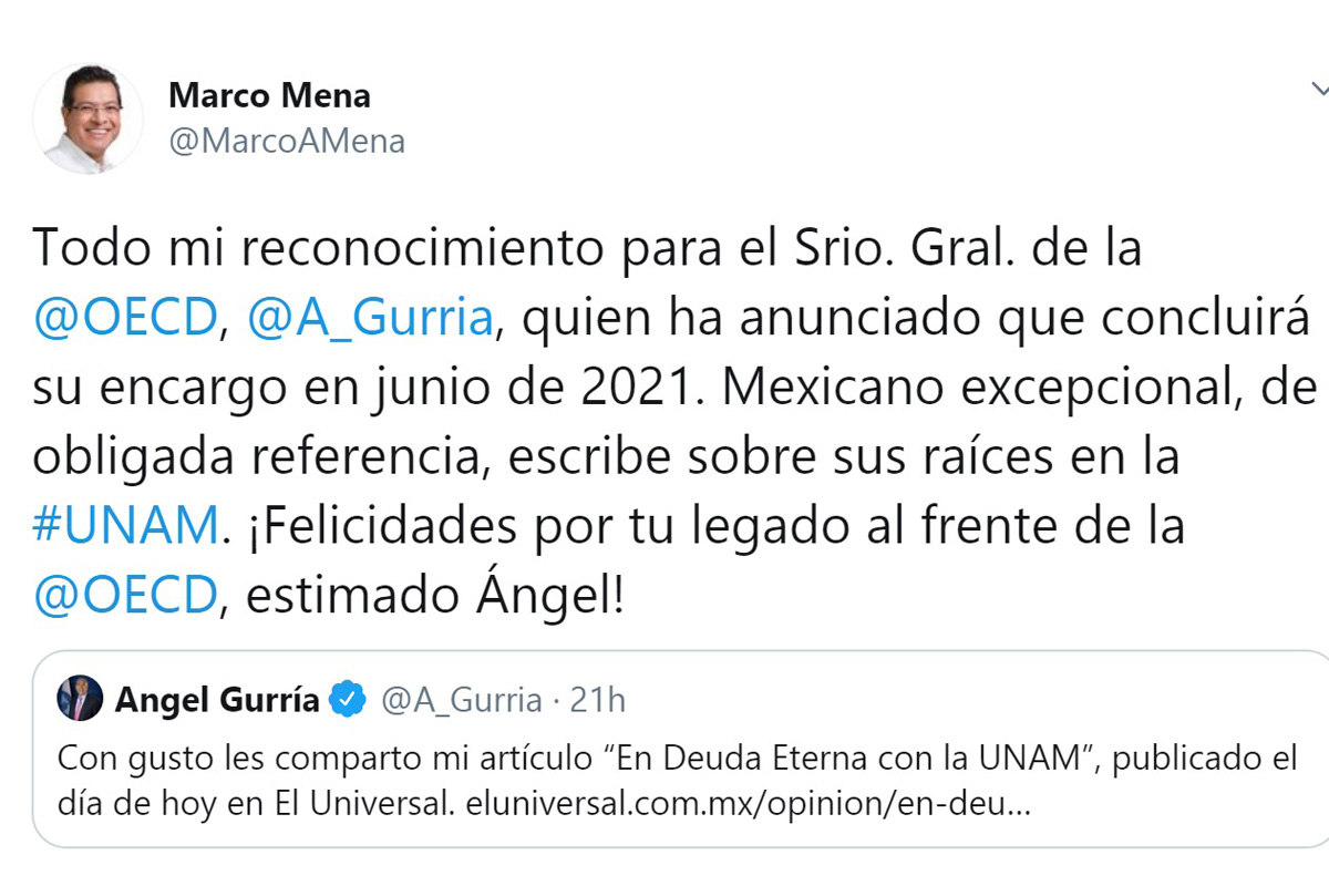 Reconoce @MarcoAMena labor de @A_Gurria al frente de la @OECD