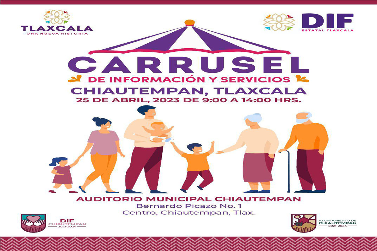 El Ayuntamiento de Chiautempan en coordinación con el Sistema Estatal DIF (SEDIF) anuncia sobre la instalación del "Carrusel de Información y Servicios" el próximo martes 25 de abril, en el...