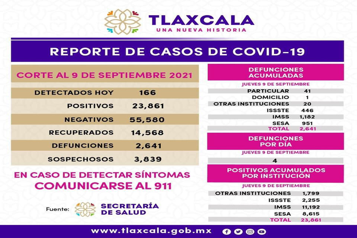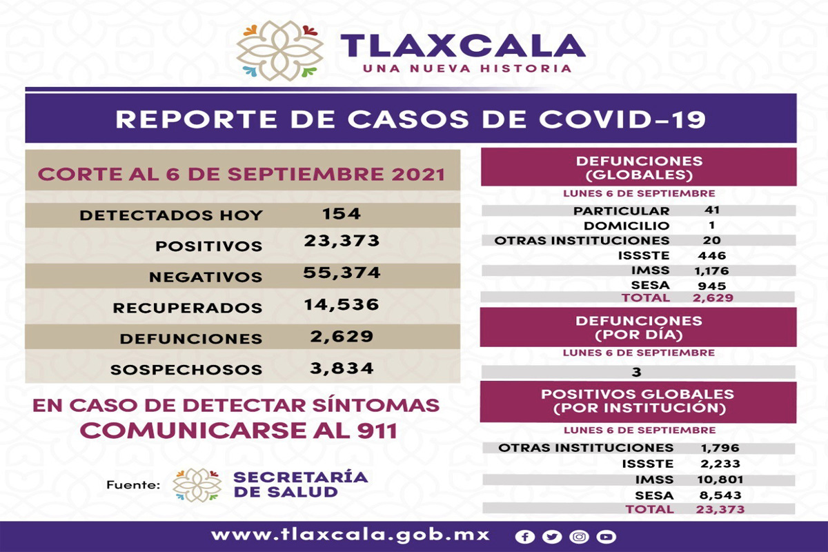 En apoyo a la economía de las familias, con el corte hasta el 18 de septiembre. El Gobierno de Tlaxcala, a través de la Secretaría de Salud (SESA), realizó 703...