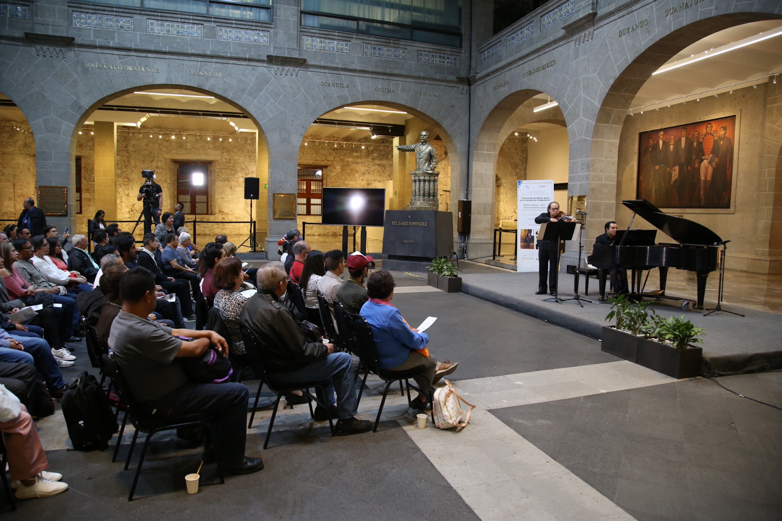Manuel Ramos y Carlos Salmerón tocan piezas de Beethoven, Halffter, Enríquez, Rosas, Martínez, Manzanero y Lara Como parte de su agenda cultural, el Senado de la República recibió al violinista...